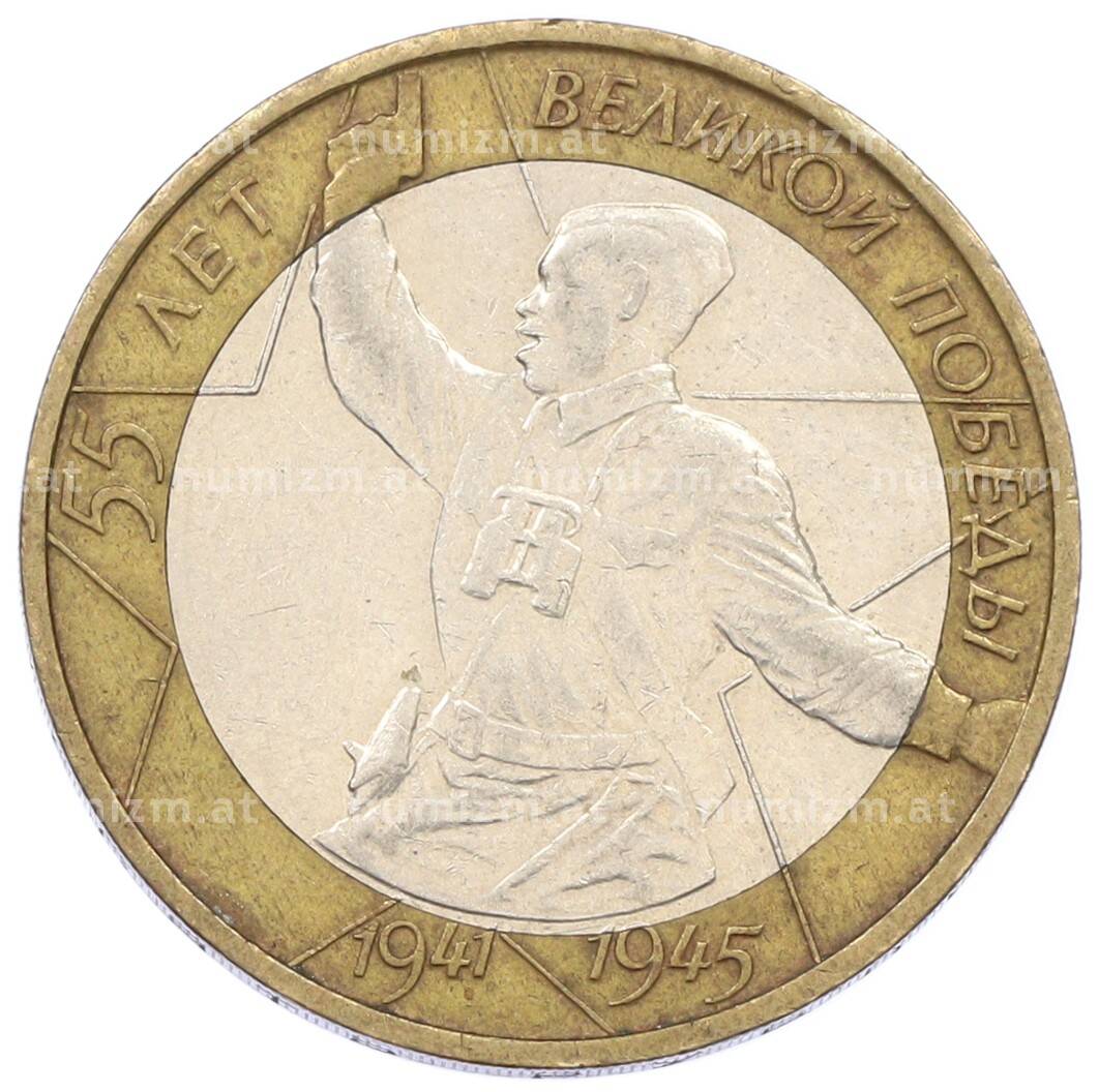 Монета 10 рублей 2000 года ММД «55 лет Великой Победы» (Артикул: K12-57733): подробные характеристики, качественные фотографии в высоком разрешении, низкая цена.