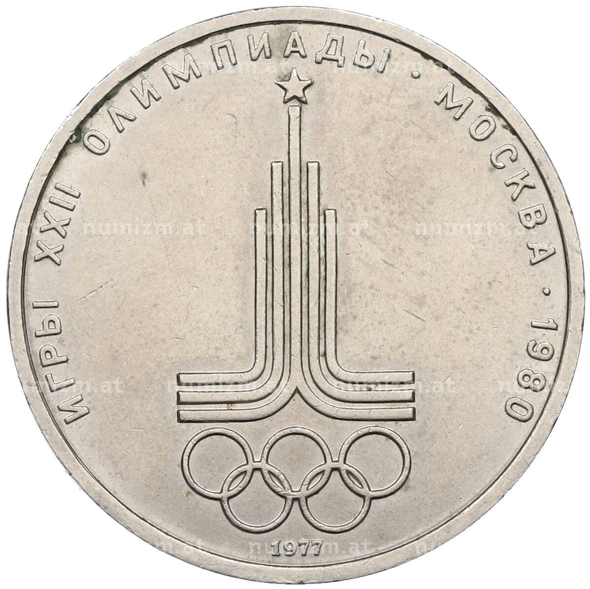 Интернет магазин «Нумизмат» предлагает приобрести 1 рубль 1977 года «XXII летние Олимпийские Игры 1980 в Москве (Олимпиада-80) — Эмблема».
