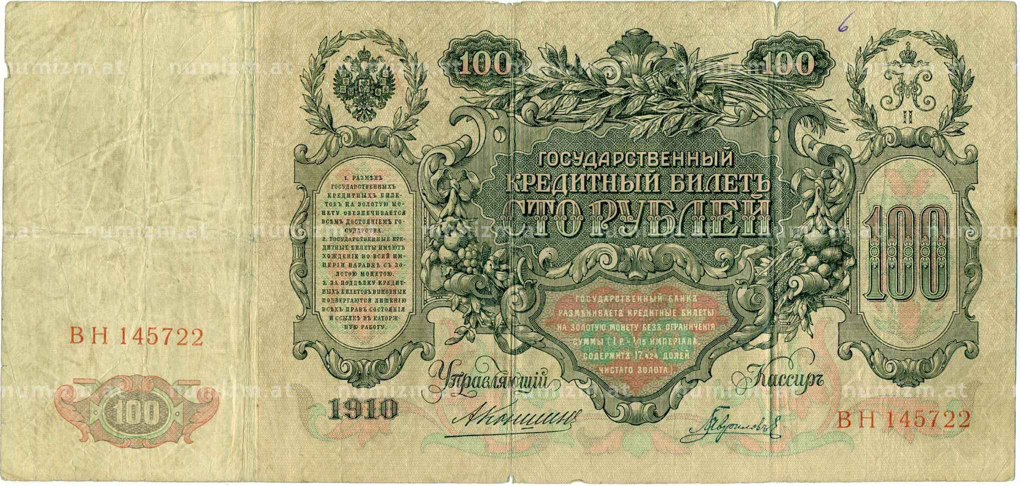 Купить 100 рублей 1910 года Коншин / Гаврилов по привлекательной цене можно в нашем интернет-магазине — Вам достаточно оформить заказ на сайте. Все монеты, представленные в каталоге, находятся в наличии на нашем складе.