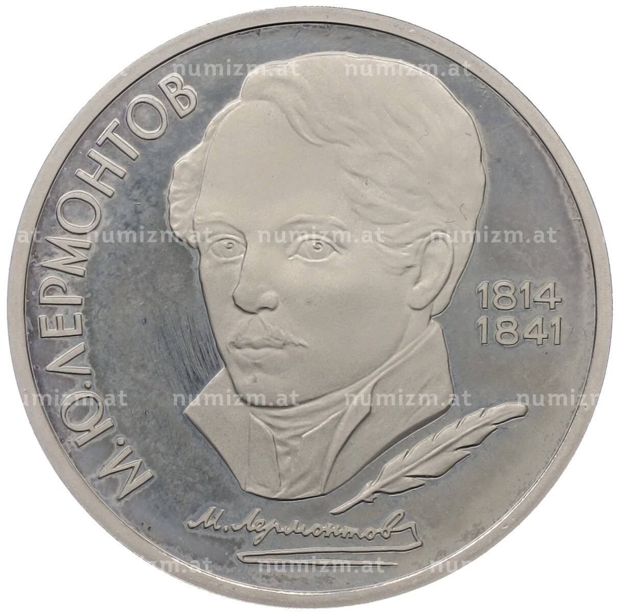 Интернет магазин «Нумизмат» предлагает приобрести 1 рубль 1989 года «Михаил Юрьевич Лермонтов» (Proof).