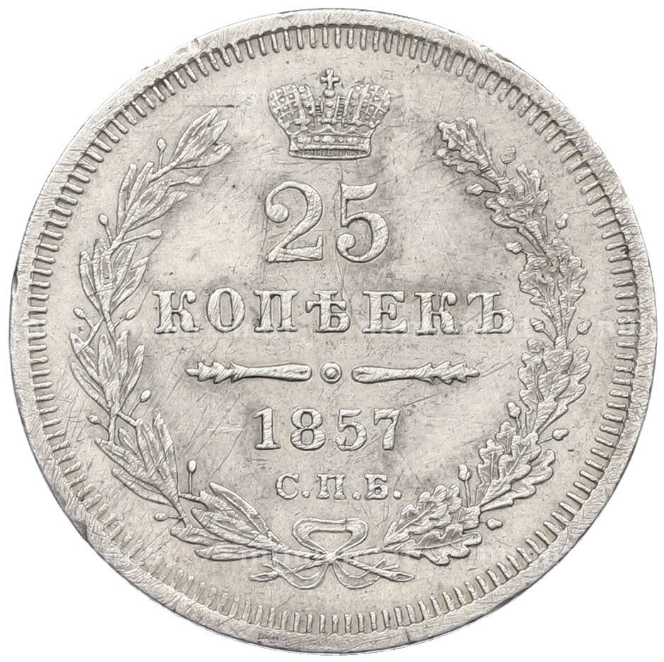 Купить 25 копеек 1857 года СПБ ФБ по привлекательной цене можно в нашем интернет-магазине — Вам достаточно оформить заказ на сайте. Все монеты, представленные в каталоге, находятся в наличии на нашем складе.