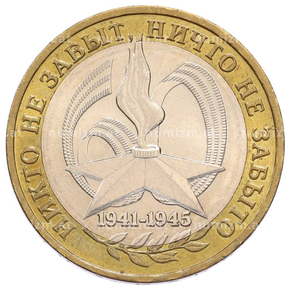Интернет магазин «Нумизмат» предлагает приобрести 10 рублей 2005 года ММД «60 лет Победы».
