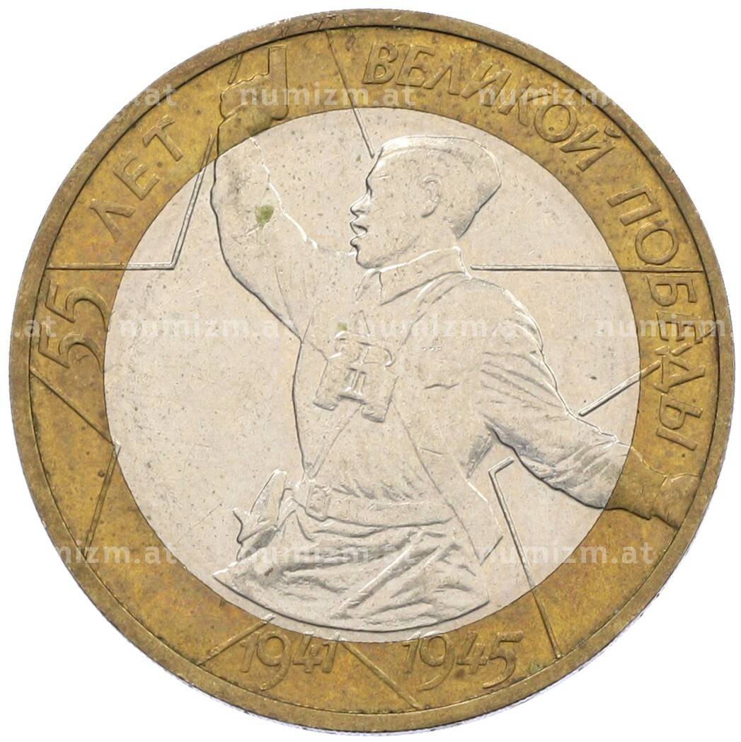 Монета 10 рублей 2000 года ММД «55 лет Победы» (Артикул: K12-61107): подробные характеристики, качественные фотографии в высоком разрешении, низкая цена.