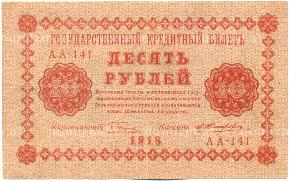 20.01.2025Интернет магазин «Нумизмат» предлагает приобрести 10 рублей 1918 года.