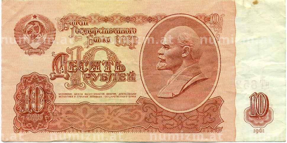 Банкнота 10 рублей 1961 года (Артикул: K12-61643): подробные характеристики, качественные фотографии в высоком разрешении, низкая цена.