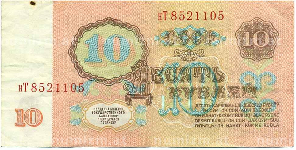 • Банкнота 10 рублей 1961 года (Артикул: K12-61643) — Фото №1 Банкнота 10 рублей 1961 года (Артикул: K12-61643) — Фото №2