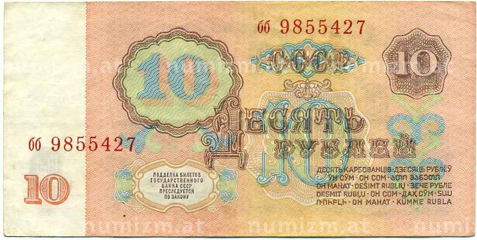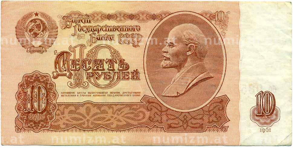 • Банкнота 10 рублей 1961 года (Артикул: K12-61649) — Фото №1 Банкнота 10 рублей 1961 года (Артикул: K12-61649) — Фото №2