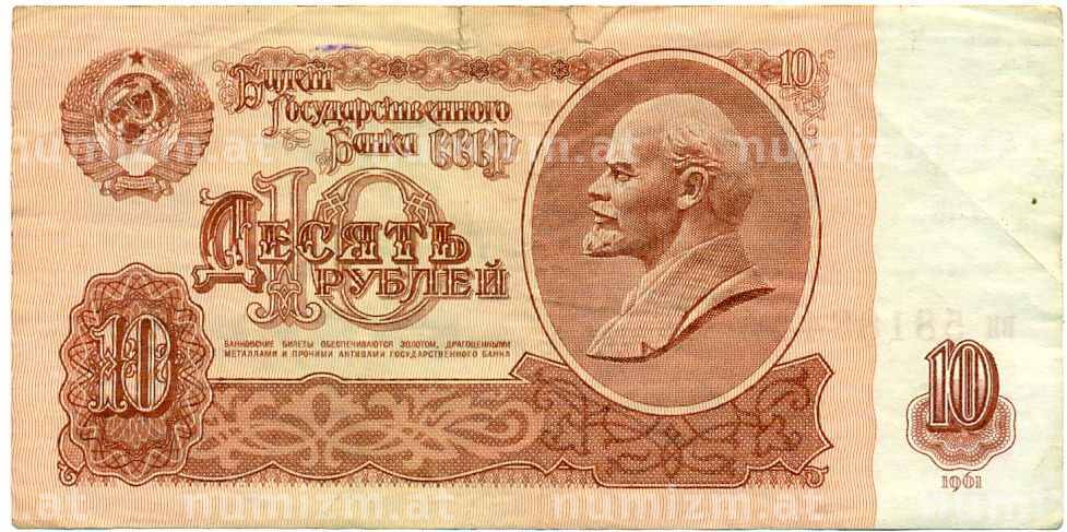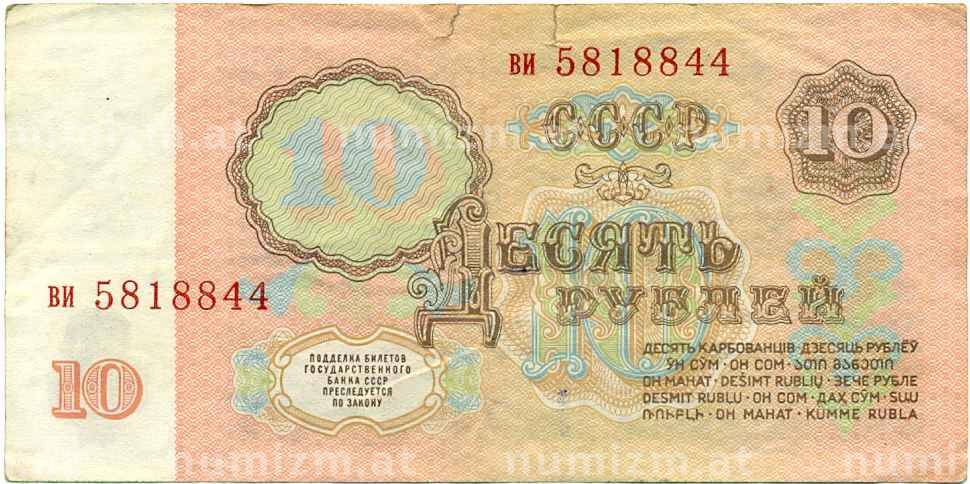 • Банкнота 10 рублей 1961 года (Артикул: K12-61650) — Фото №1 Банкнота 10 рублей 1961 года (Артикул: K12-61650) — Фото №2