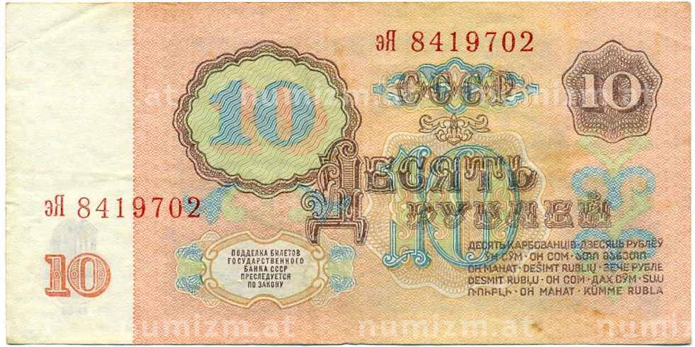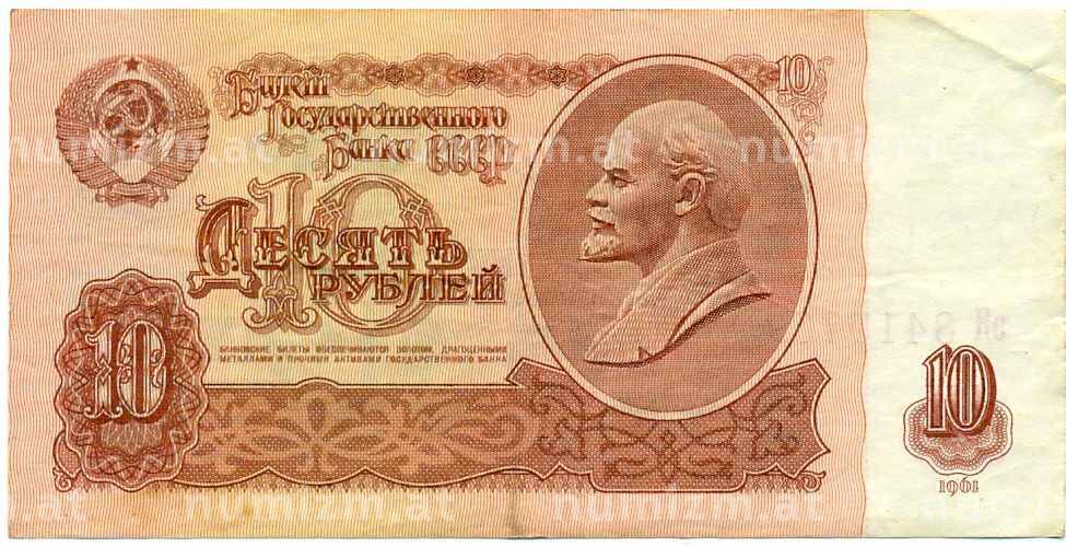 • Банкнота 10 рублей 1961 года (Артикул: K12-61654) — Фото №1 Банкнота 10 рублей 1961 года (Артикул: K12-61654) — Фото №2