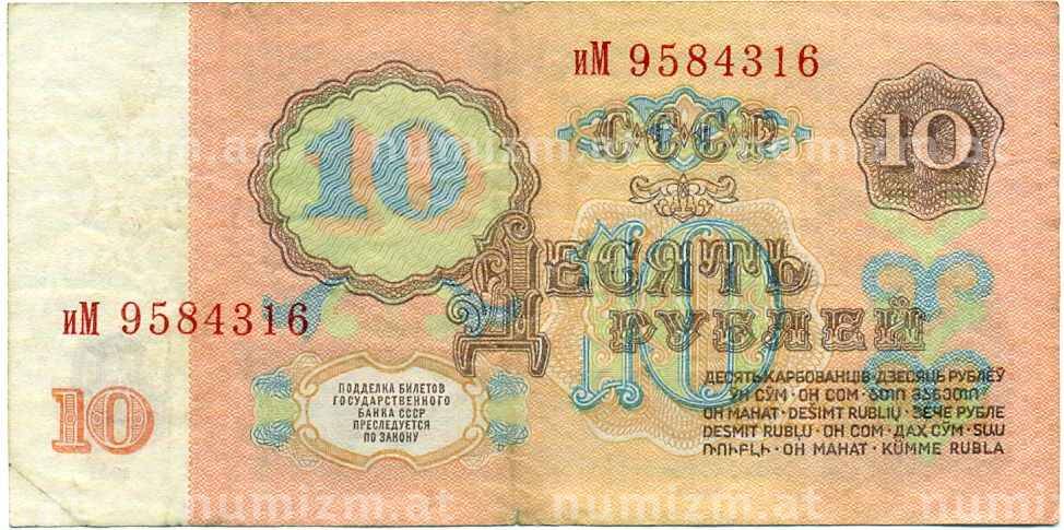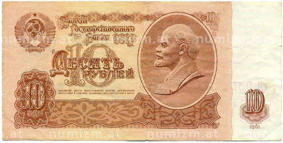 • Банкнота 10 рублей 1961 года (Артикул: K12-61657) — Фото №1 Банкнота 10 рублей 1961 года (Артикул: K12-61657) — Фото №2