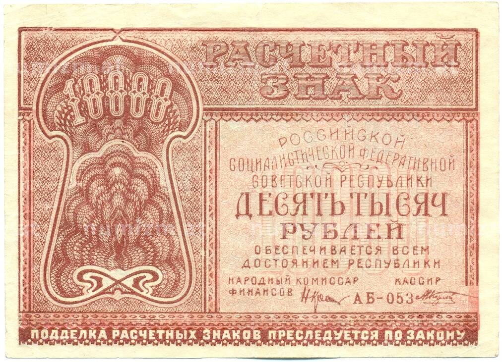 20.01.2025Интернет магазин «Нумизмат» предлагает приобрести 10000 рублей 1921 года.