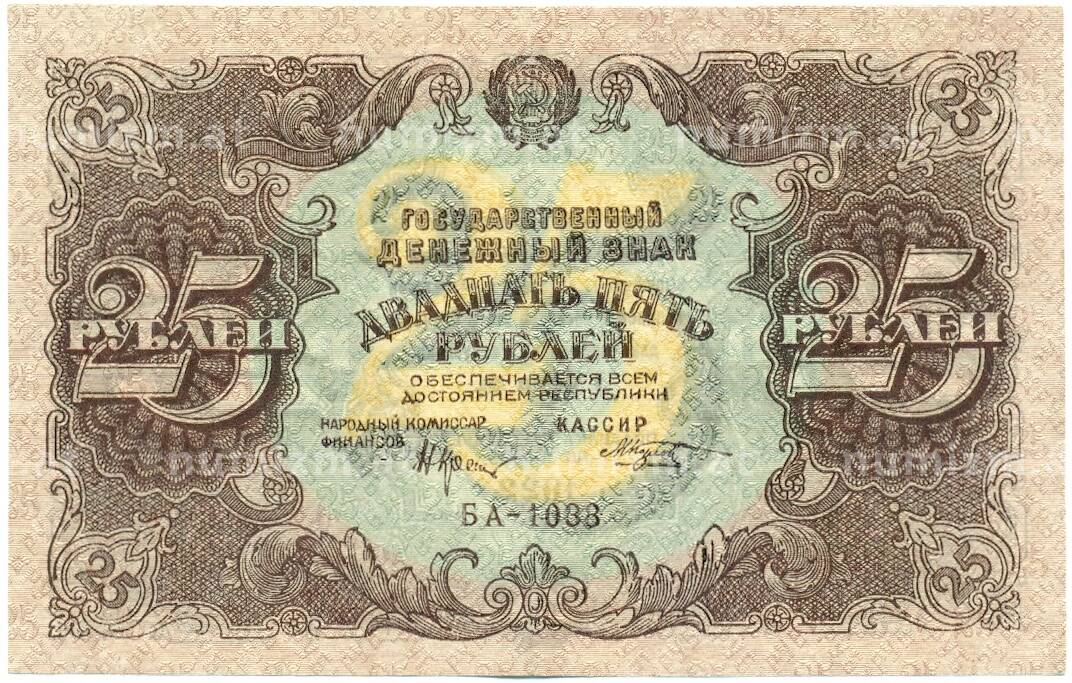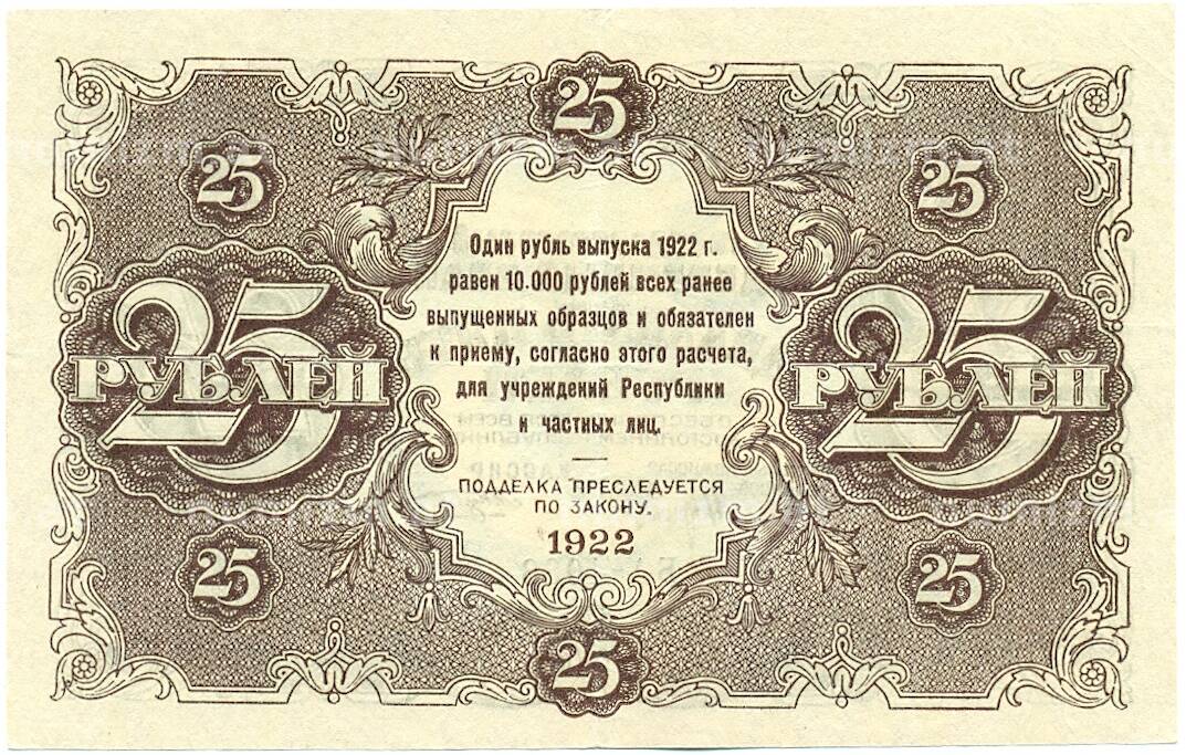 20.01.2025Интернет магазин «Нумизмат» предлагает приобрести 25 рублей 1922 года.