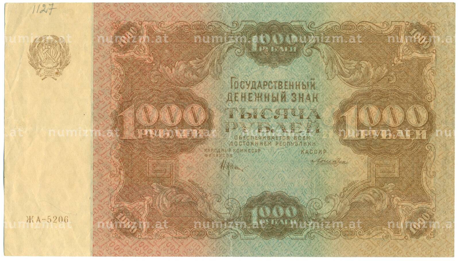 20.01.2025Интернет магазин «Нумизмат» предлагает приобрести 1000 рублей 1922 года.