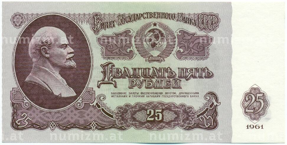 Банкнота 25 рублей 1961 года (Артикул: K12-62209): подробные характеристики, качественные фотографии в высоком разрешении, низкая цена.