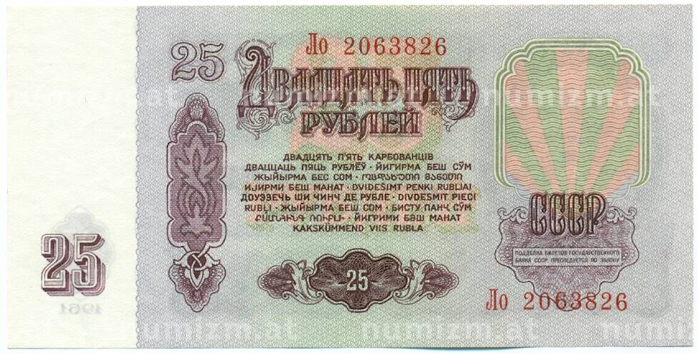 Банкнота 25 рублей 1961 года [Артикул: K12-62209]