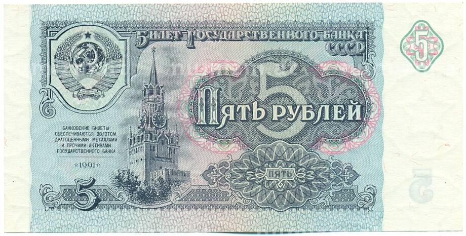 Банкнота 5 рублей 1991 года (Артикул: K12-62214): подробные характеристики, качественные фотографии в высоком разрешении, низкая цена.