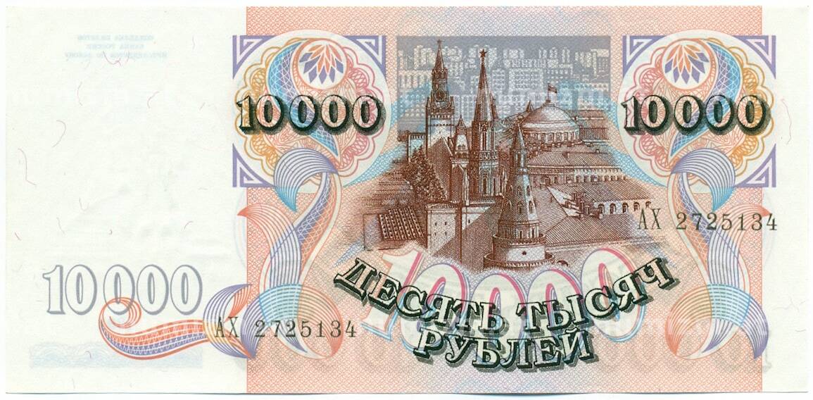 20.01.2025Интернет магазин «Нумизмат» предлагает приобрести 10000 рублей 1992 года.
