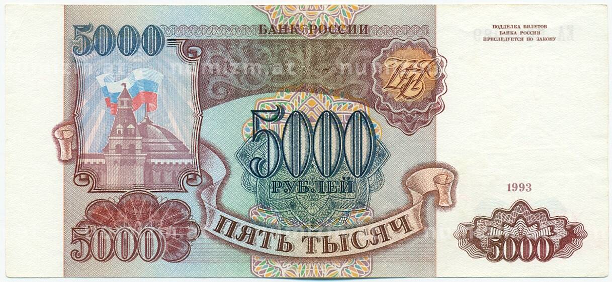 20.01.2025Интернет магазин «Нумизмат» предлагает приобрести 5000 рублей 1993 года.