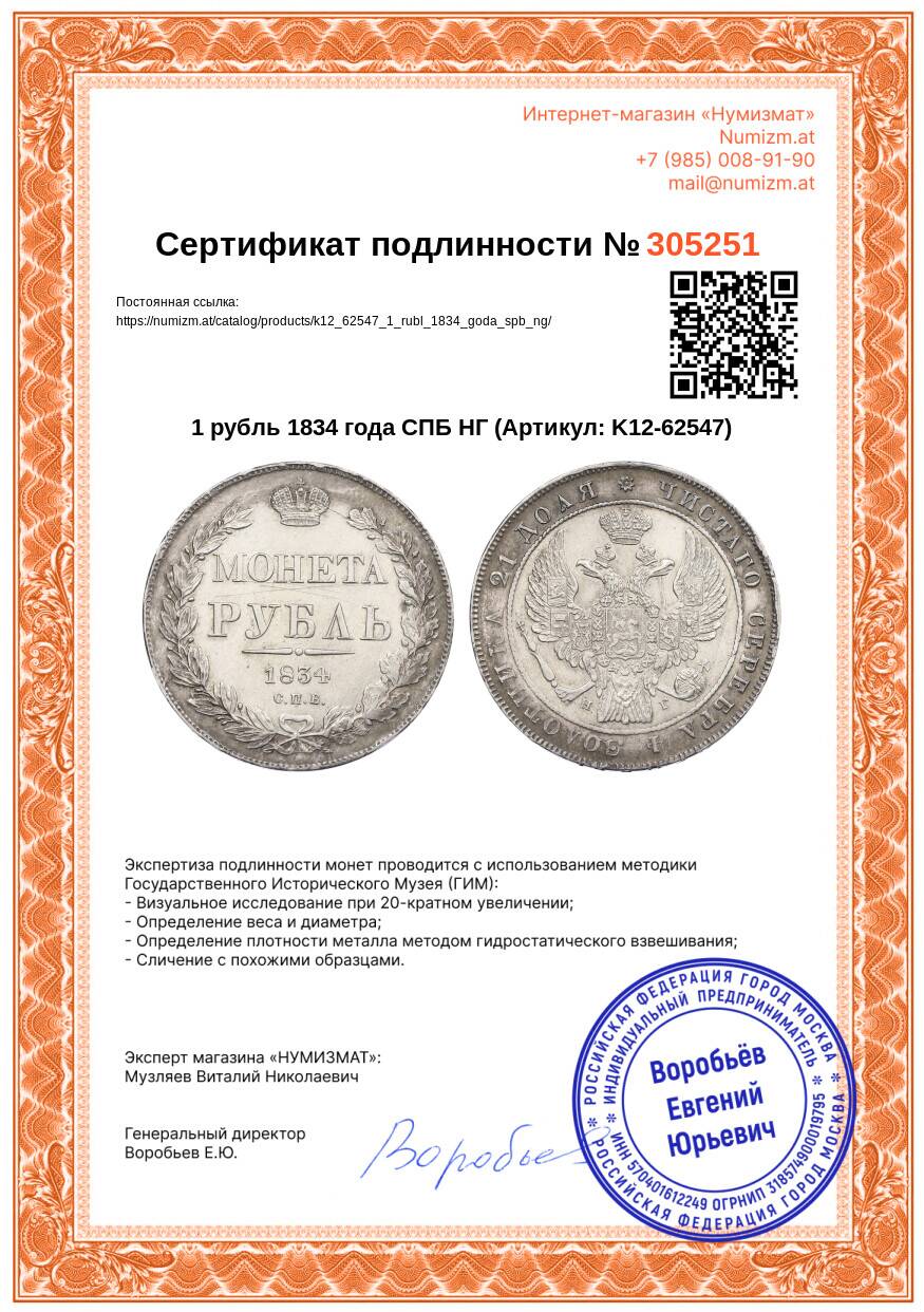 20.01.2025Интернет магазин «Нумизмат» предлагает приобрести 1 рубль 1834 года СПБ НГ.