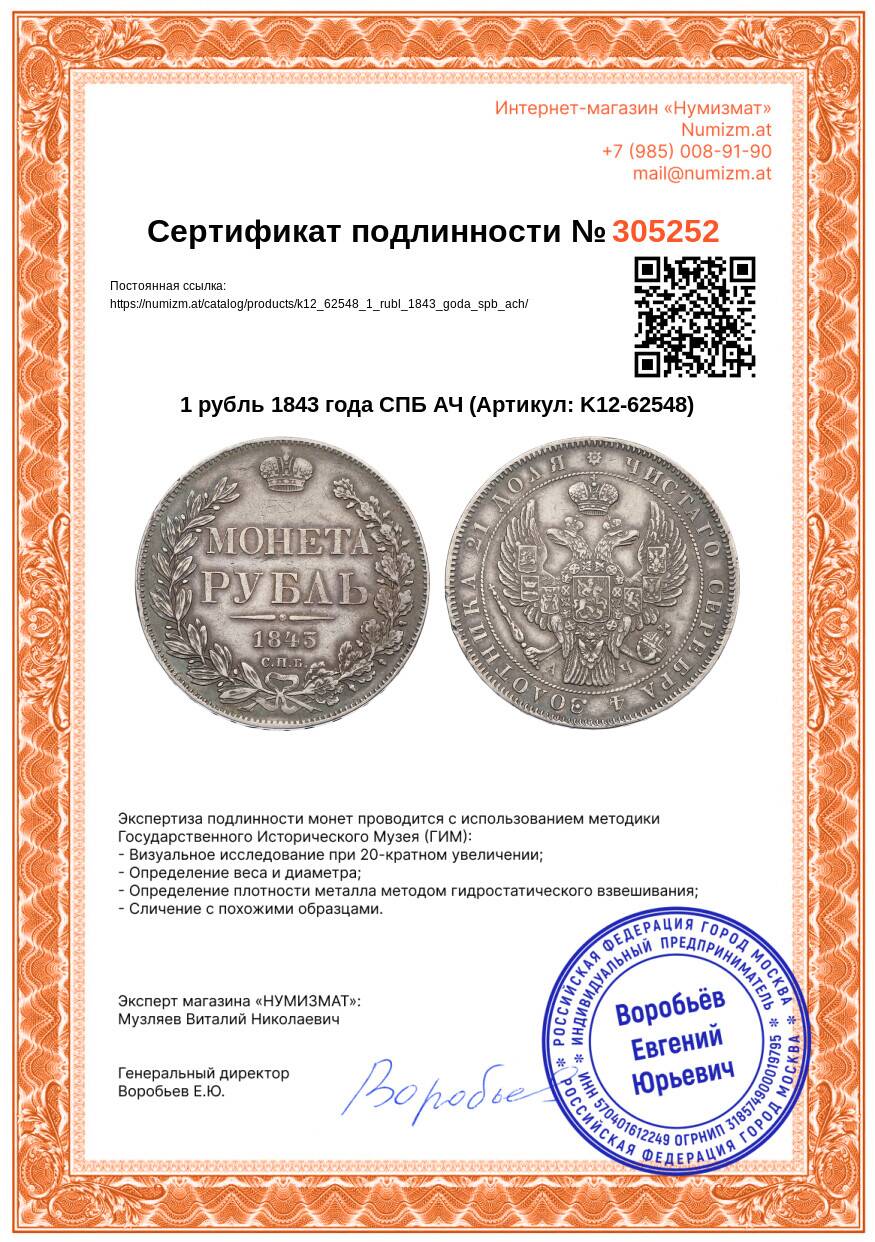 Купить 1 рубль 1843 года СПБ АЧ по привлекательной цене можно в нашем интернет-магазине — Вам достаточно оформить заказ на сайте. Все монеты, представленные в каталоге, находятся в наличии на нашем складе.
