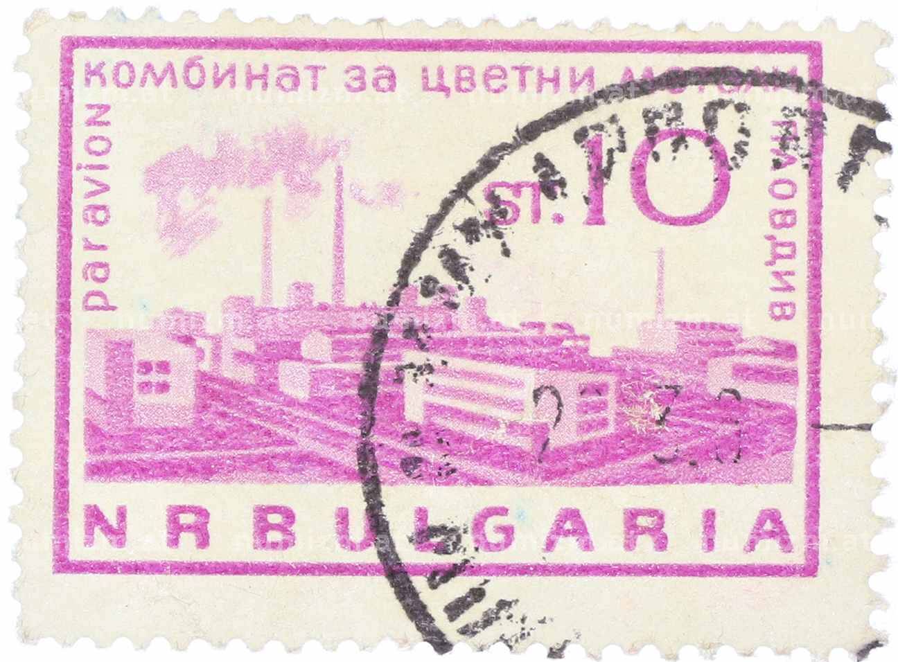 20.01.2025Интернет магазин «Нумизмат» предлагает приобрести Почтовая марка 10 стотинок 1964 года Болгария «Металлургический завод Пловдив».