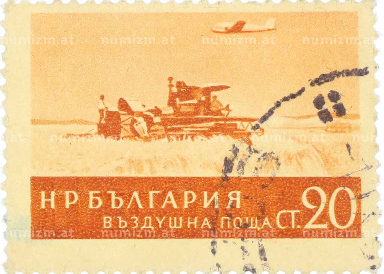 20.01.2025Интернет магазин «Нумизмат» предлагает приобрести Почтовая марка 20 стотинок 1954 года Болгария «Комбайн для уборки урожая».