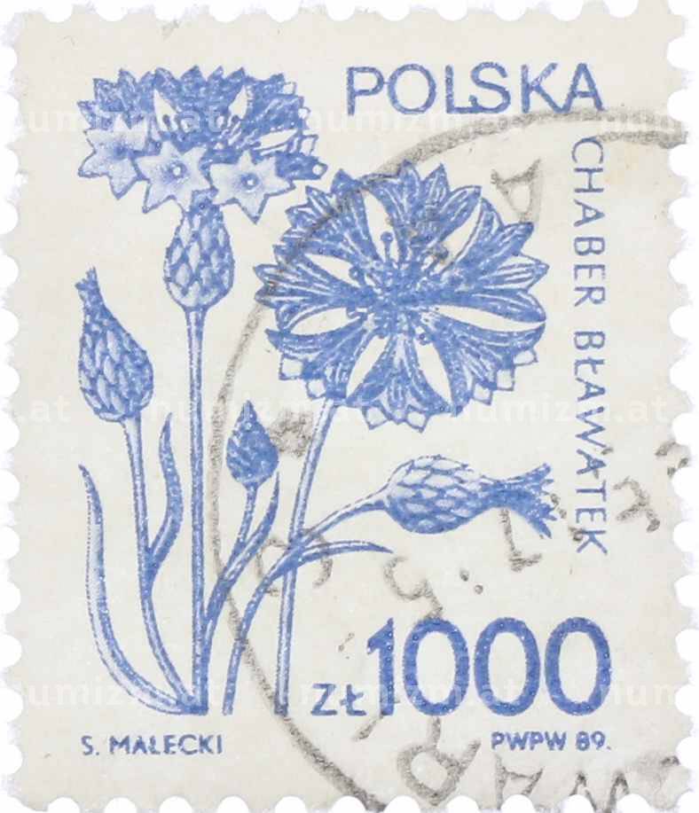 Купить Почтовая марка 1000 злотых 1989 года Польша «Василек голубой» по привлекательной цене можно в нашем интернет-магазине — Вам достаточно оформить заказ на сайте. Все монеты, представленные в каталоге, находятся в наличии на нашем складе.