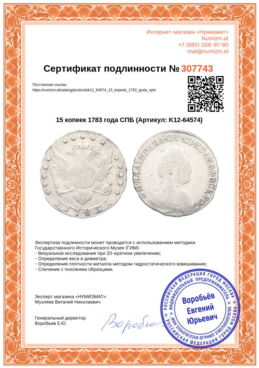 Купить 15 копеек 1783 года СПБ по привлекательной цене можно в нашем интернет-магазине — Вам достаточно оформить заказ на сайте. Все монеты, представленные в каталоге, находятся в наличии на нашем складе.