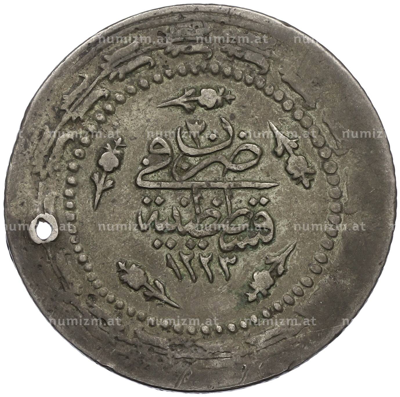 Купить 6 курушей 1837 года (АН 1223/30) Османская Империя — Махмуд II (Отверстие) по привлекательной цене можно в нашем интернет-магазине — Вам достаточно оформить заказ на сайте. Все монеты, представленные в каталоге, находятся в наличии на нашем складе.