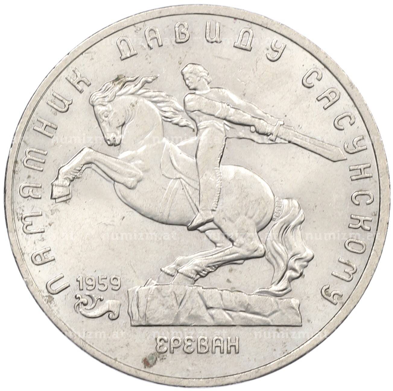 Интернет магазин «Нумизмат» предлагает приобрести 5 рублей 1991 года «Памятник Давиду Сасунскому в Ереване».
