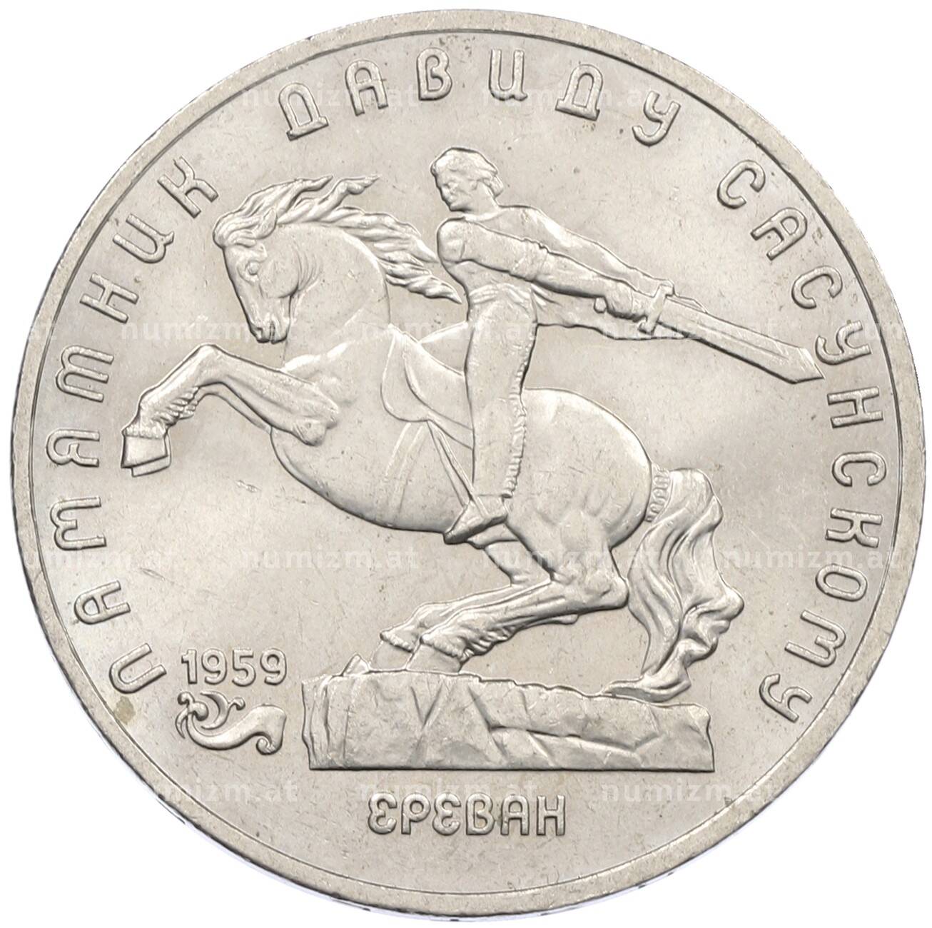 Интернет магазин «Нумизмат» предлагает приобрести 5 рублей 1991 года «Памятник Давиду Сасунскому в Ереване».