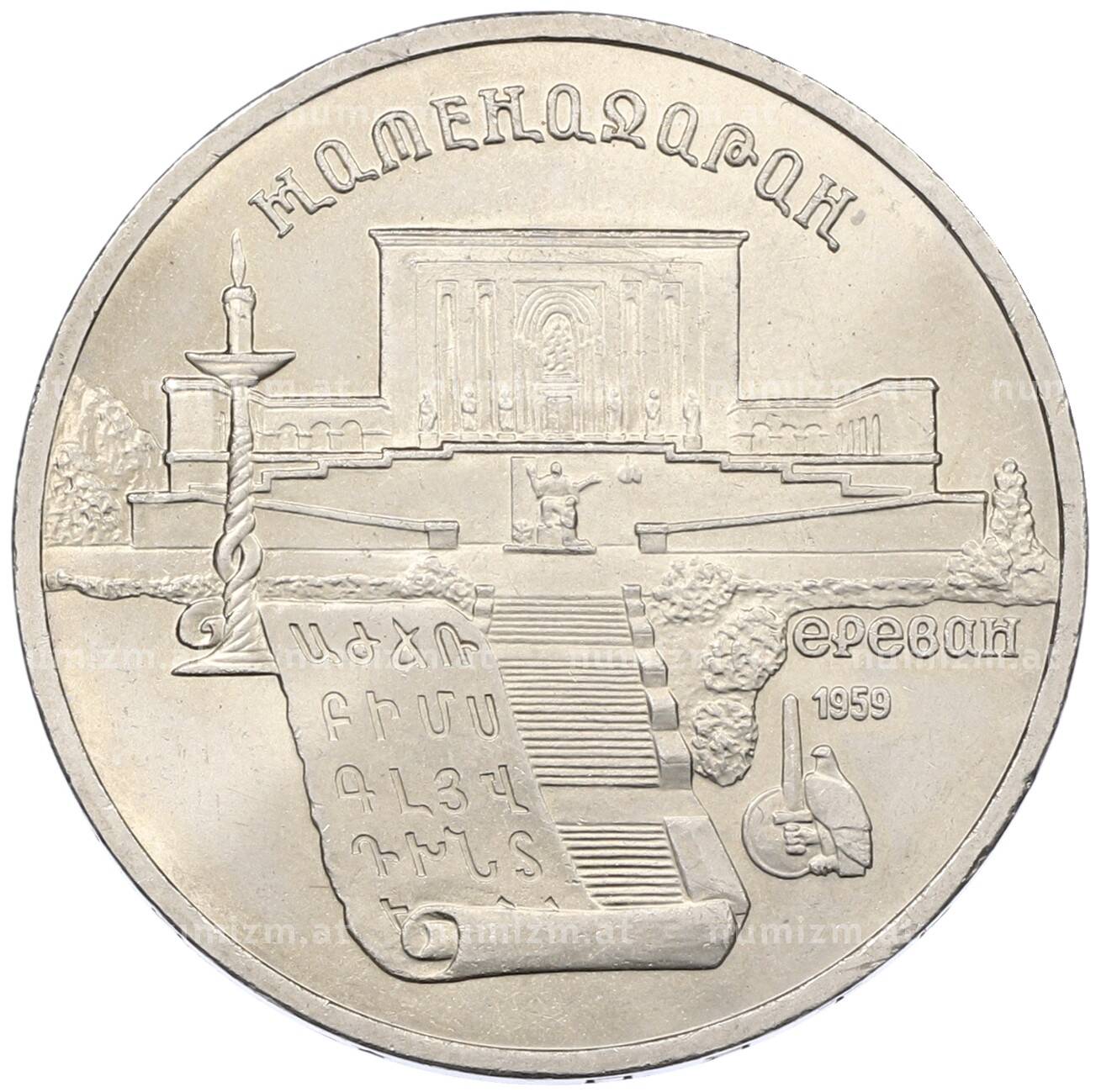 Интернет магазин «Нумизмат» предлагает приобрести 5 рублей 1990 года «Матенадаран в Ереване».