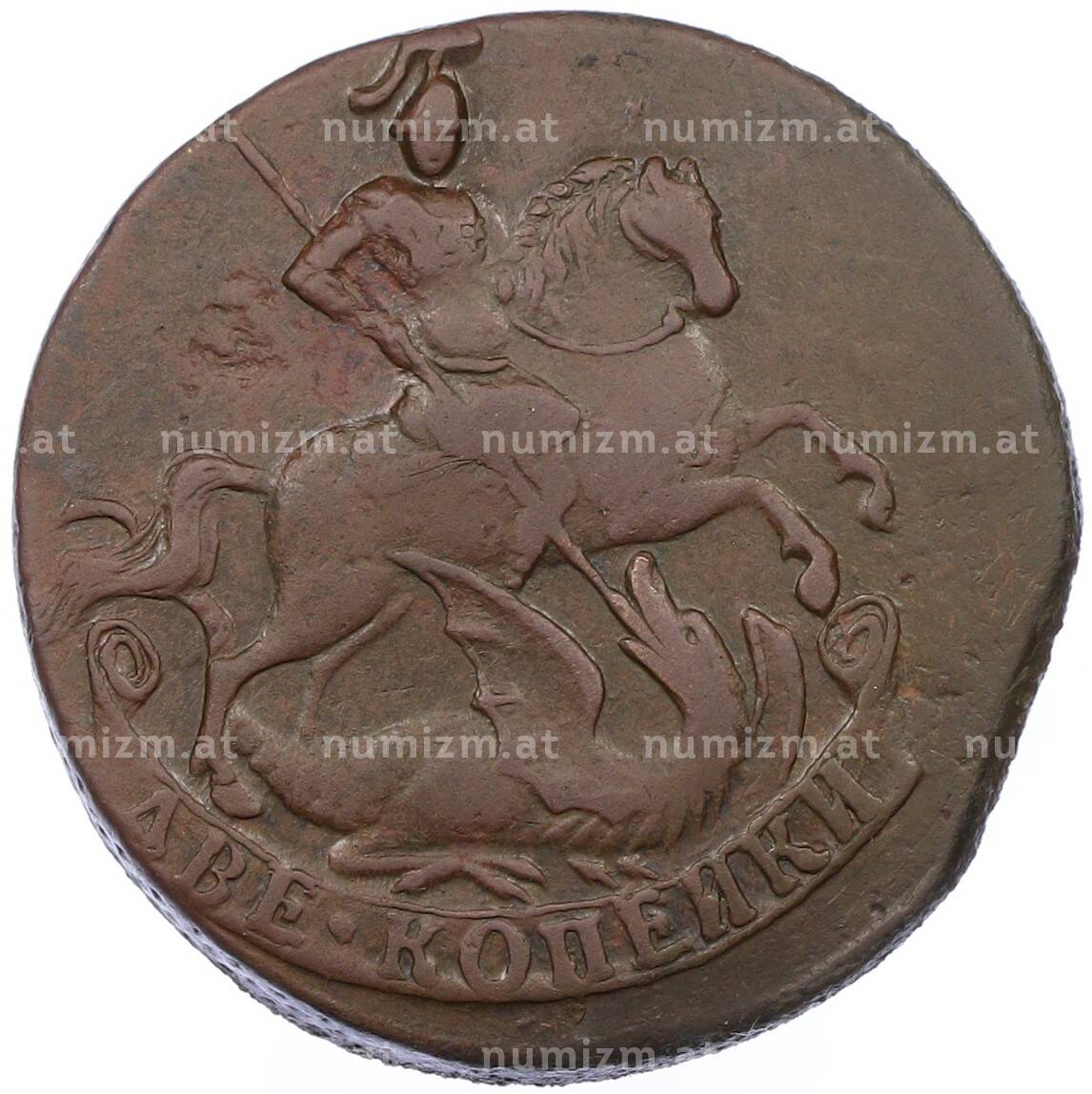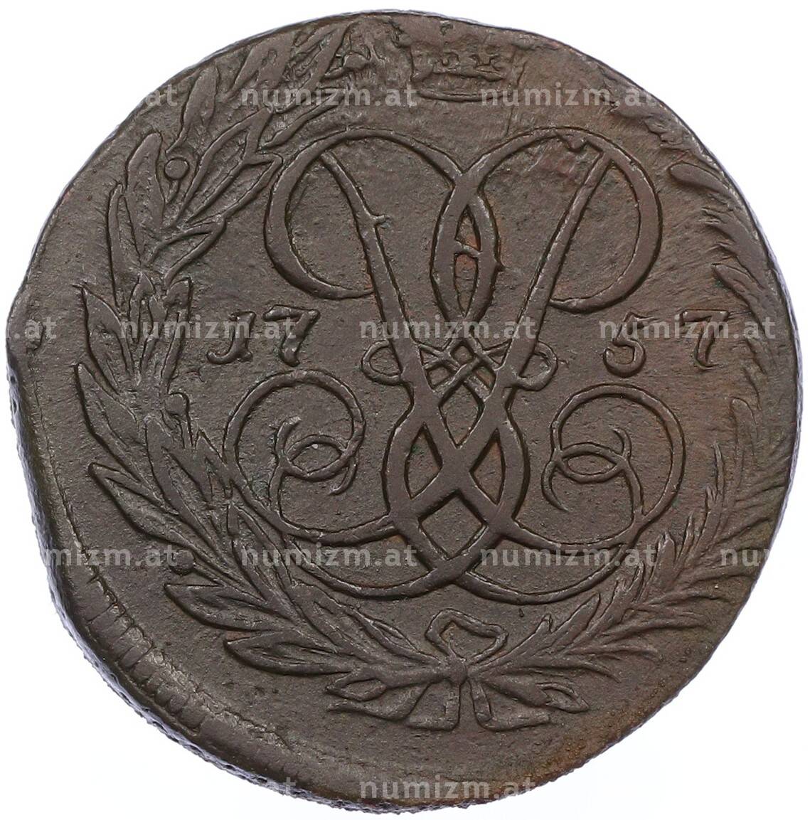 20.01.2025Интернет магазин «Нумизмат» предлагает приобрести 2 копейки 1757 года.