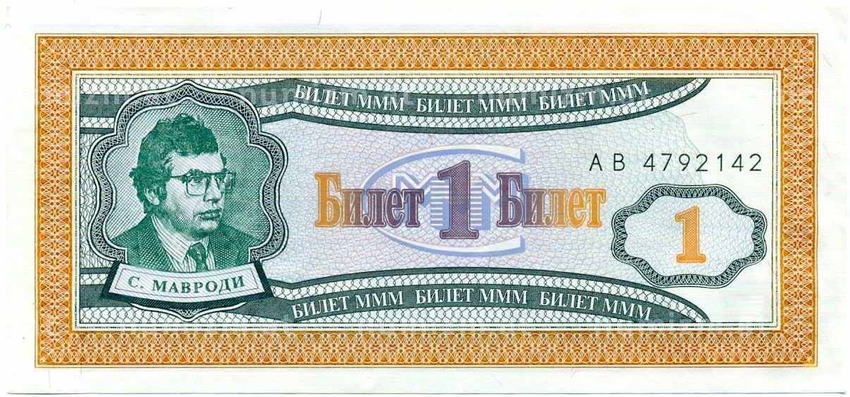 • Банкнота 1 билет 1994 года МММ (Артикул: K12-66876) — Фото №1 Банкнота 1 билет 1994 года МММ (Артикул: K12-66876) — Фото №2