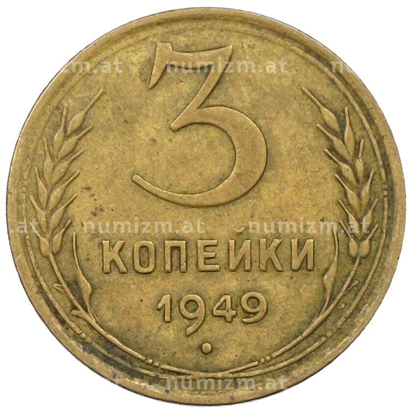 Монета 3 копейки 1949 года (Артикул: K12-67044): подробные характеристики, качественные фотографии в высоком разрешении, низкая цена.