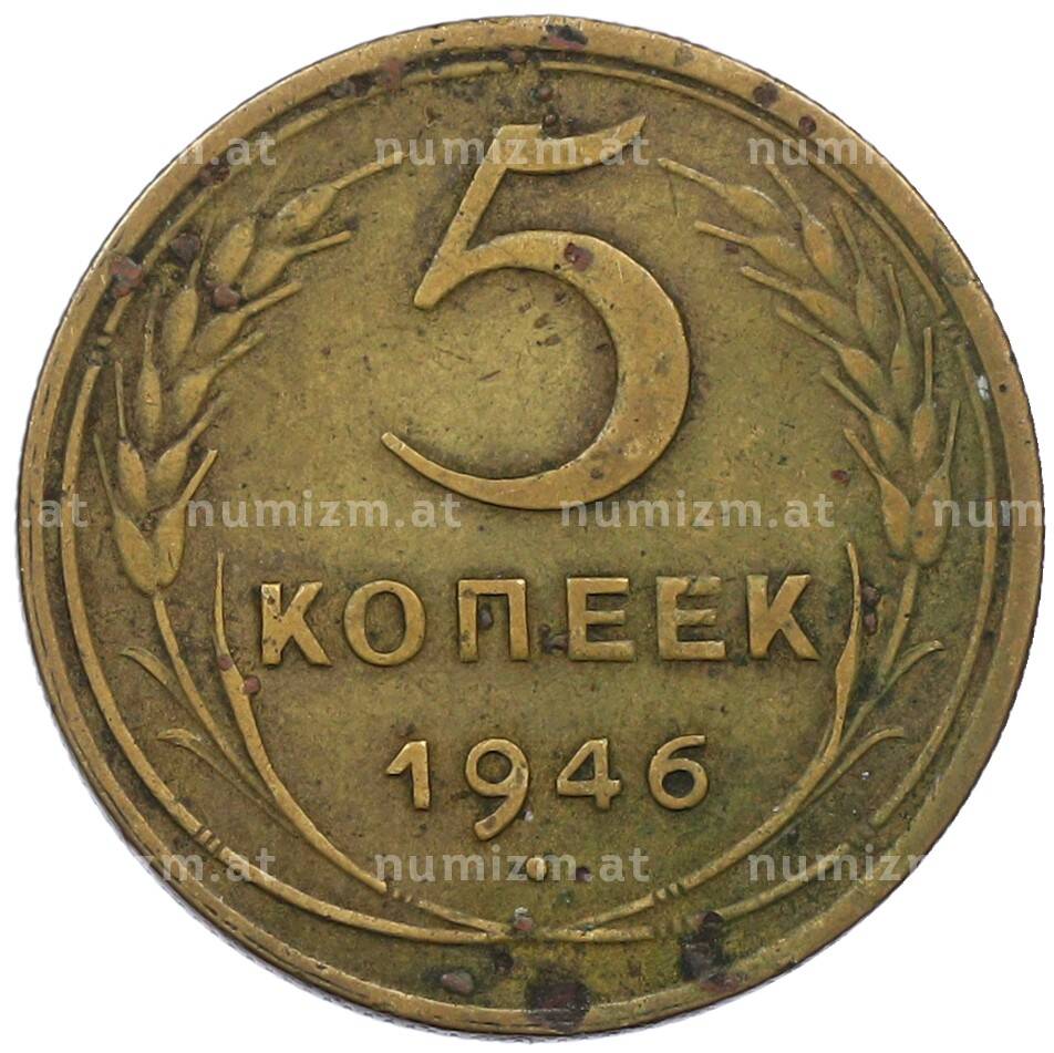 Монета 5 копеек 1946 года (Артикул: K12-67048): подробные характеристики, качественные фотографии в высоком разрешении, низкая цена.