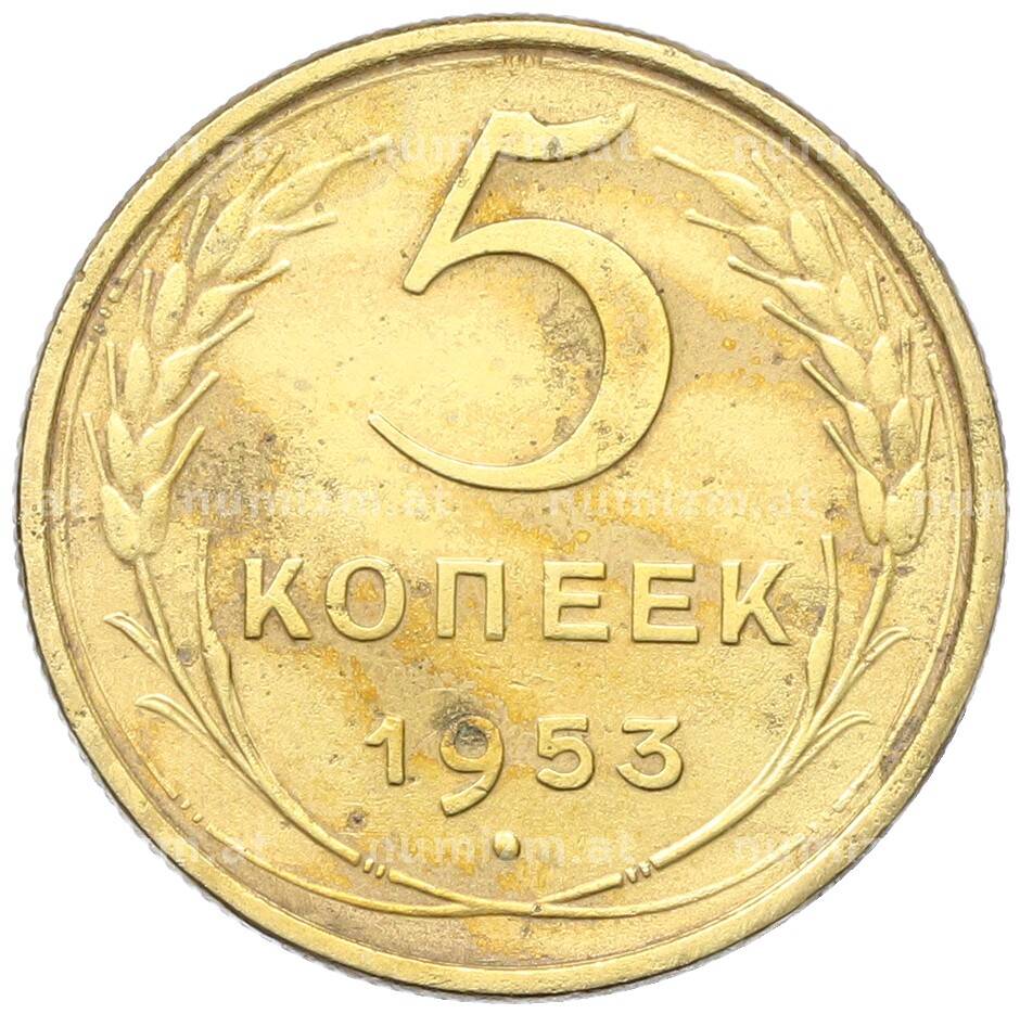 • Монета 5 копеек 1953 года (Артикул: K12-68602) — Фото №1 Монета 5 копеек 1953 года (Артикул: K12-68602) — Фото №2