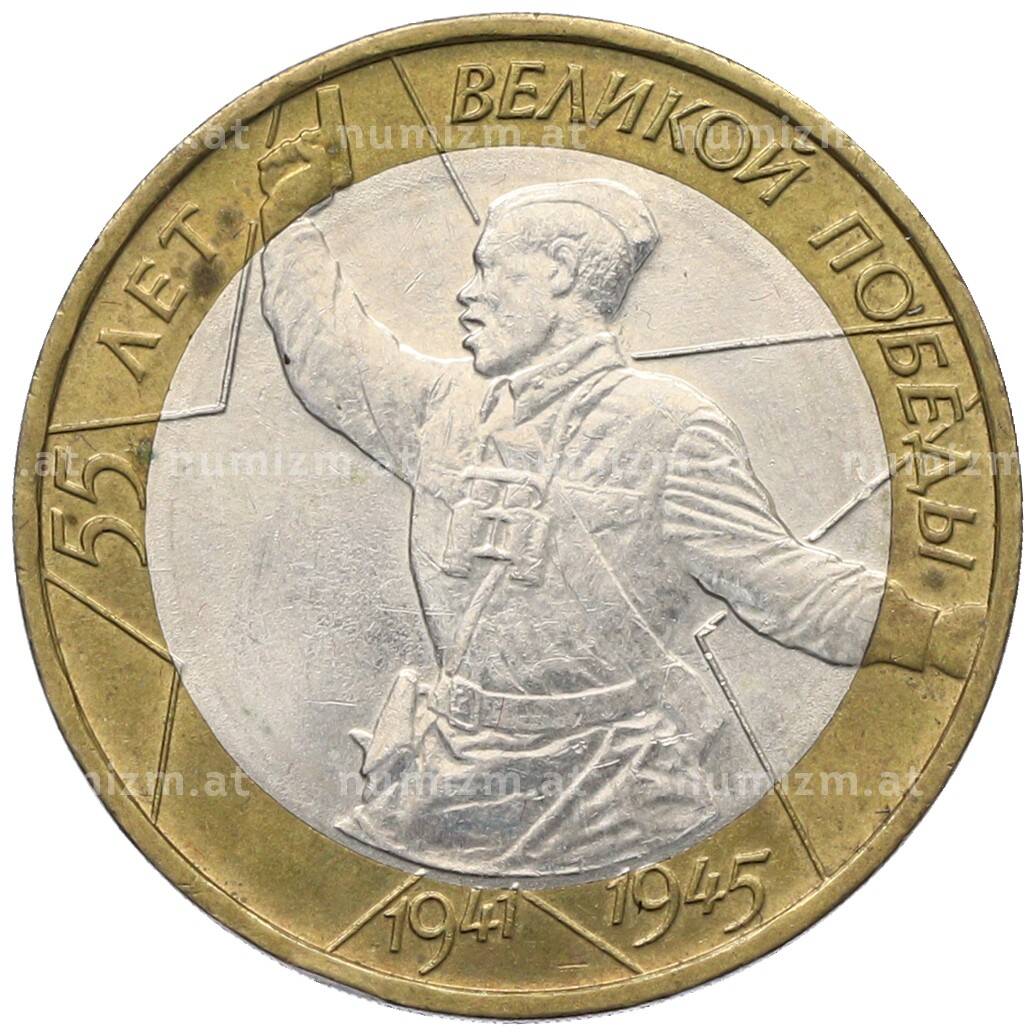 Купить 10 рублей 2000 года ММД «55 лет Великой Победы» по привлекательной цене можно в нашем интернет-магазине — Вам достаточно оформить заказ на сайте. Все монеты, представленные в каталоге, находятся в наличии на нашем складе.