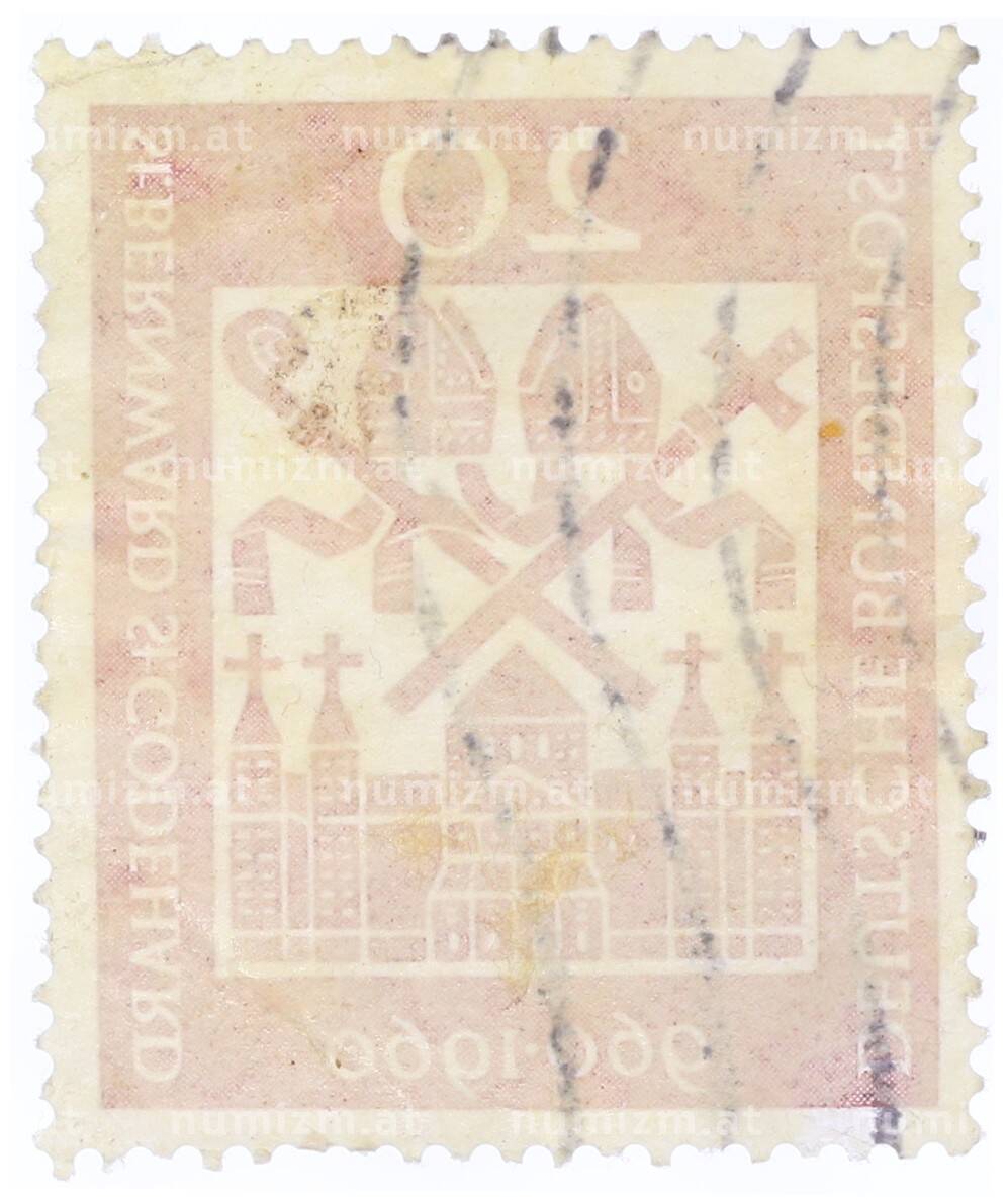 Купить Почтовая марка 20 пфеннигов 1960 года Германия «Тысячелетие епископов Святого Бернарда и Святого Годехарда в Хильдесхайме» по привлекательной цене можно в нашем интернет-магазине — Вам достаточно оформить заказ на сайте. Все монеты, представленные в каталоге, находятся в наличии на нашем складе.