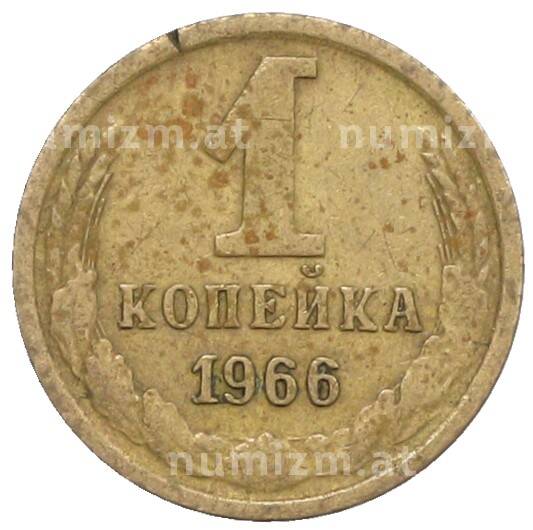 • Монета 1 копейка 1966 года (Артикул: K12-71344) — Фото №1 Монета 1 копейка 1966 года (Артикул: K12-71344) — Фото №2