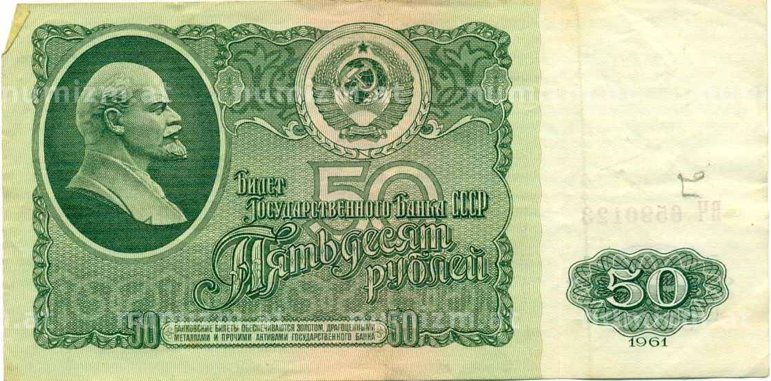 • Банкнота 50 рублей 1961 года (Артикул: K12-71798) — Фото №1 Банкнота 50 рублей 1961 года (Артикул: K12-71798) — Фото №2