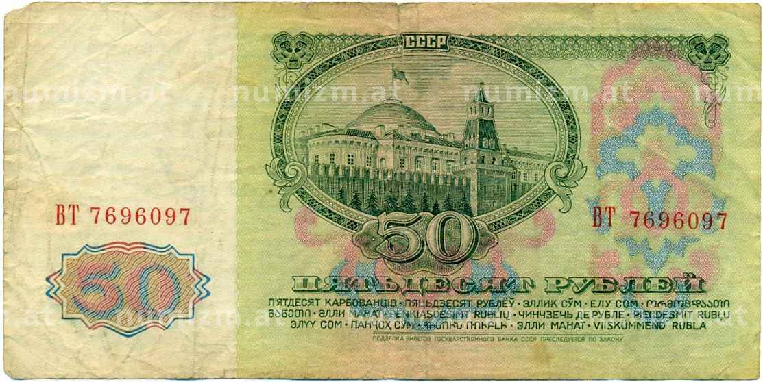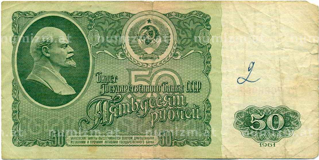 • Банкнота 50 рублей 1961 года (Артикул: K12-71799) — Фото №1 Банкнота 50 рублей 1961 года (Артикул: K12-71799) — Фото №2