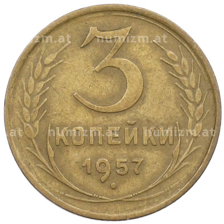 Монета 3 копейки 1957 года (Артикул: K12-73025): подробные характеристики, качественные фотографии в высоком разрешении, низкая цена.