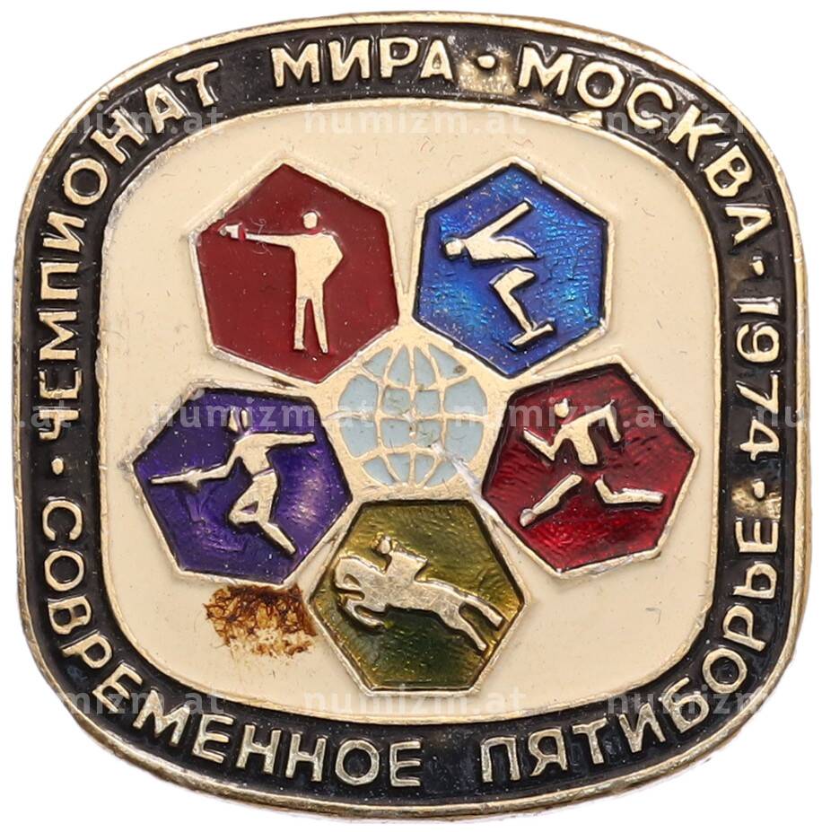 Купить Значок «Чемпионат мира — Современное пятиборье в Москве 1974 года» по привлекательной цене можно в нашем интернет-магазине — Вам достаточно оформить заказ на сайте. Все монеты, представленные в каталоге, находятся в наличии на нашем складе.