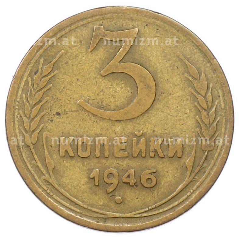 Монета 3 копейки 1946 года (Артикул: K12-73240): подробные характеристики, качественные фотографии в высоком разрешении, низкая цена.