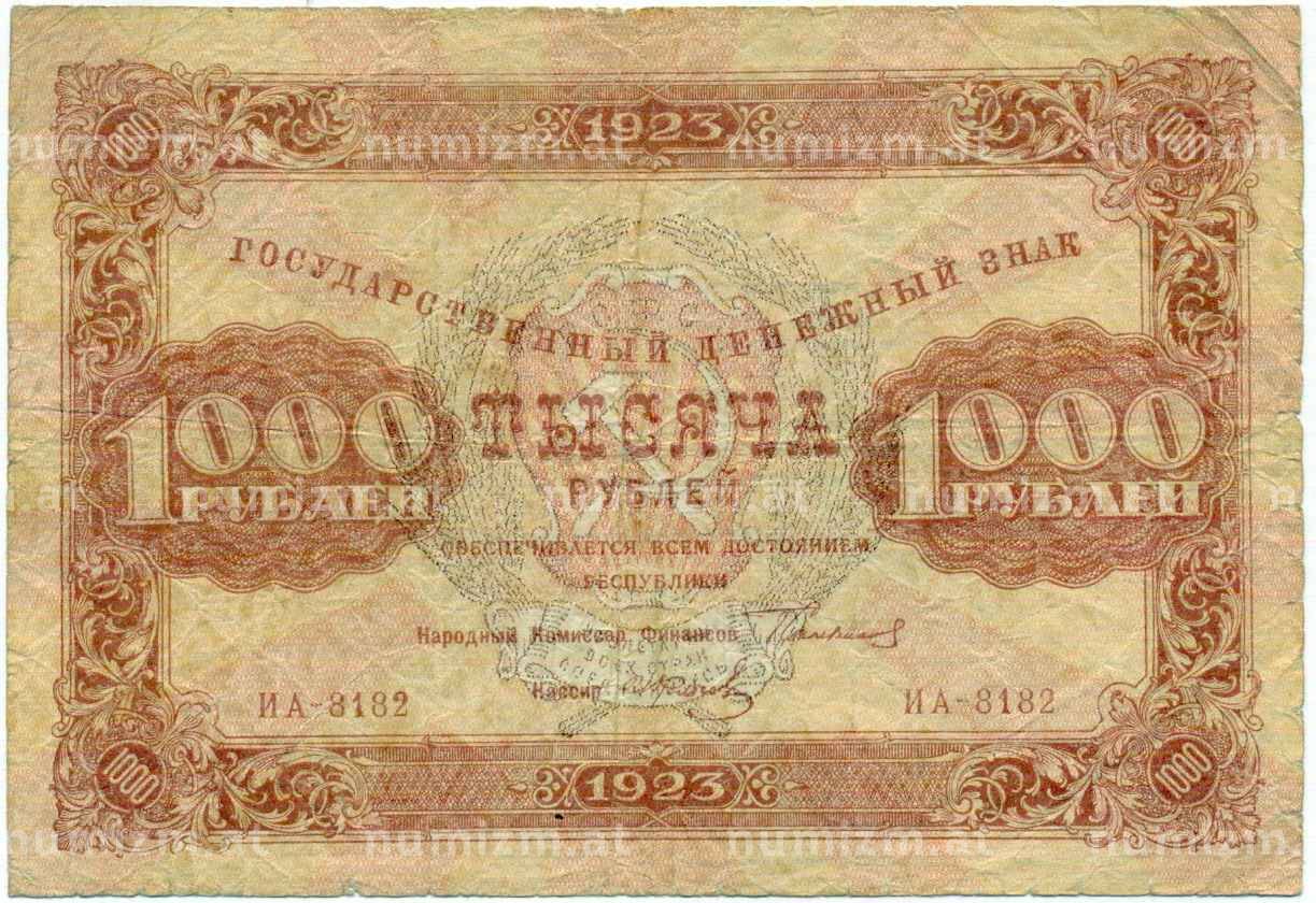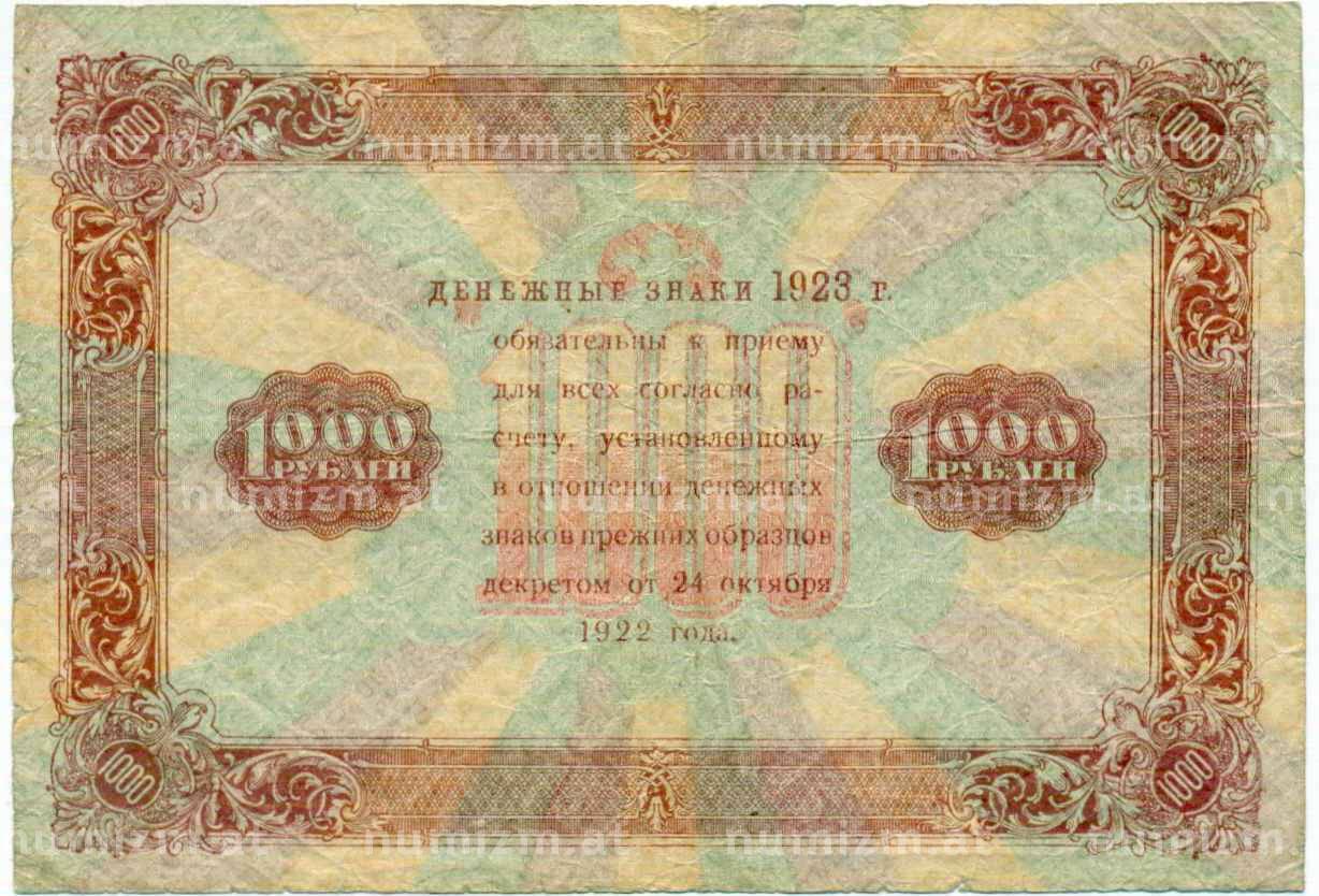 • Банкнота 1000 рублей 1923 года (Артикул: K12-73330) — Фото №1 Банкнота 1000 рублей 1923 года (Артикул: K12-73330) — Фото №2
