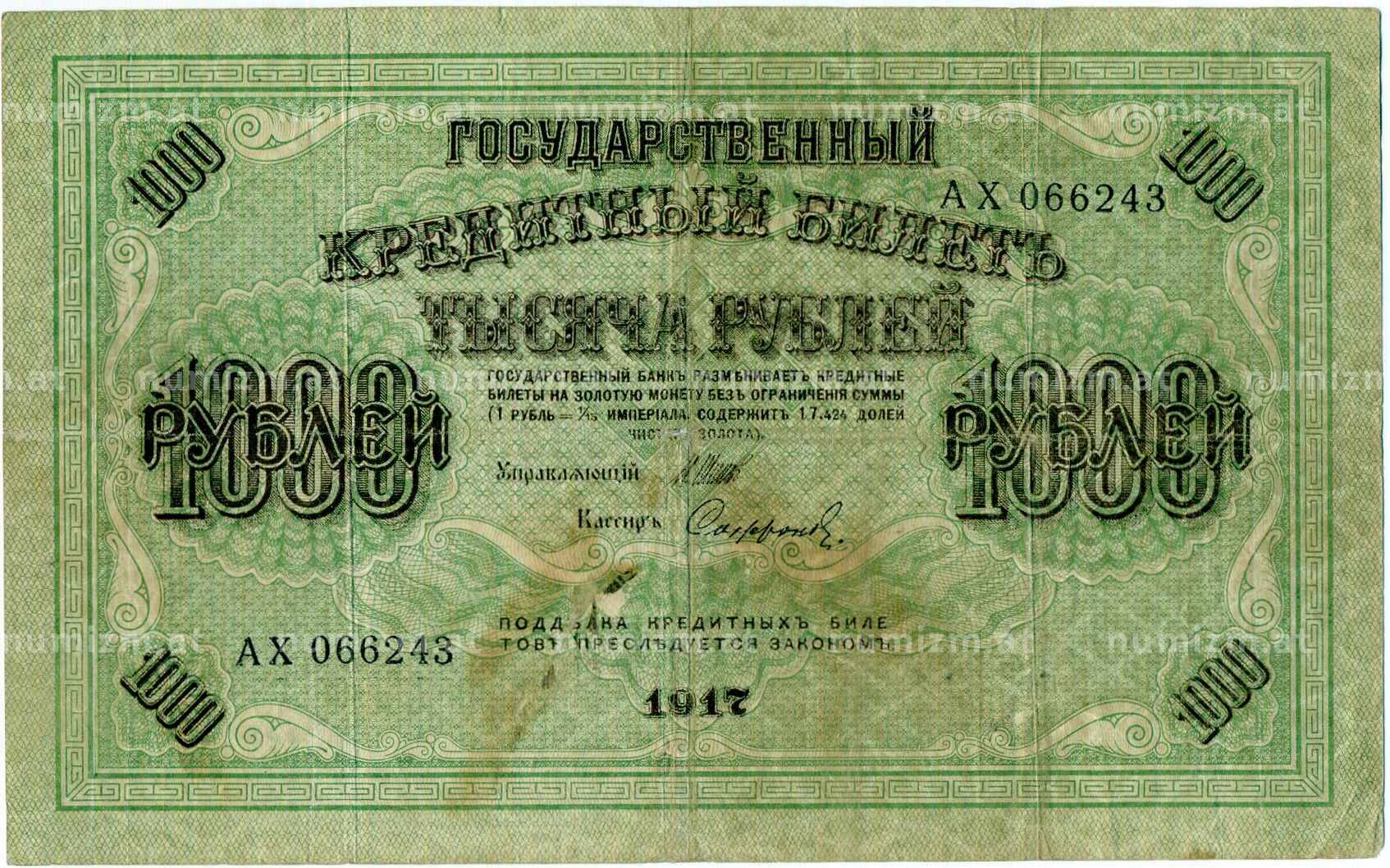 20.01.2025Интернет магазин «Нумизмат» предлагает приобрести 1000 рублей 1917 года.