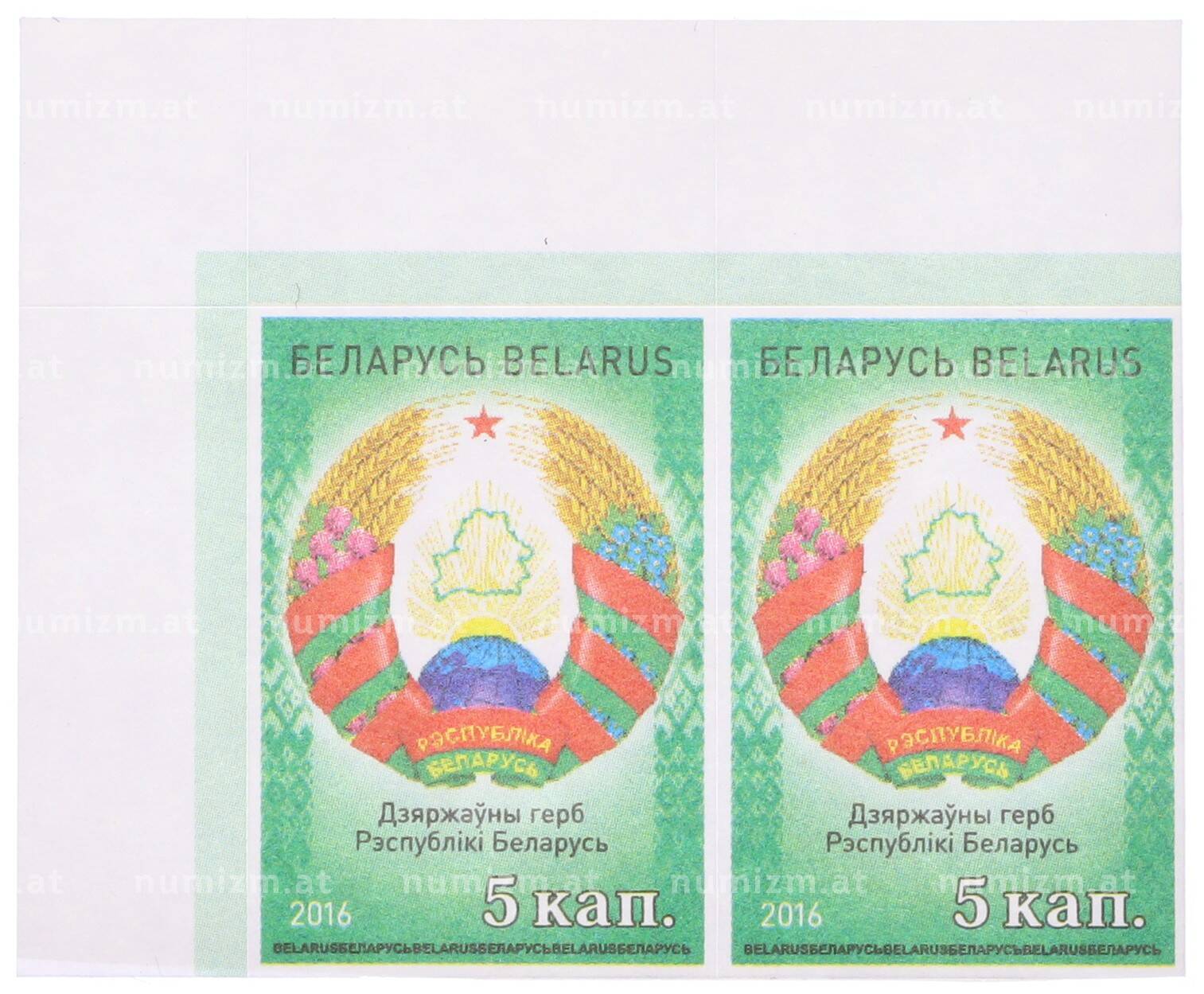 Купить Сцепка из 2 марок 5 копеек 2016 года Белоруссия «Герб» по привлекательной цене можно в нашем интернет-магазине — Вам достаточно оформить заказ на сайте. Все монеты, представленные в каталоге, находятся в наличии на нашем складе.