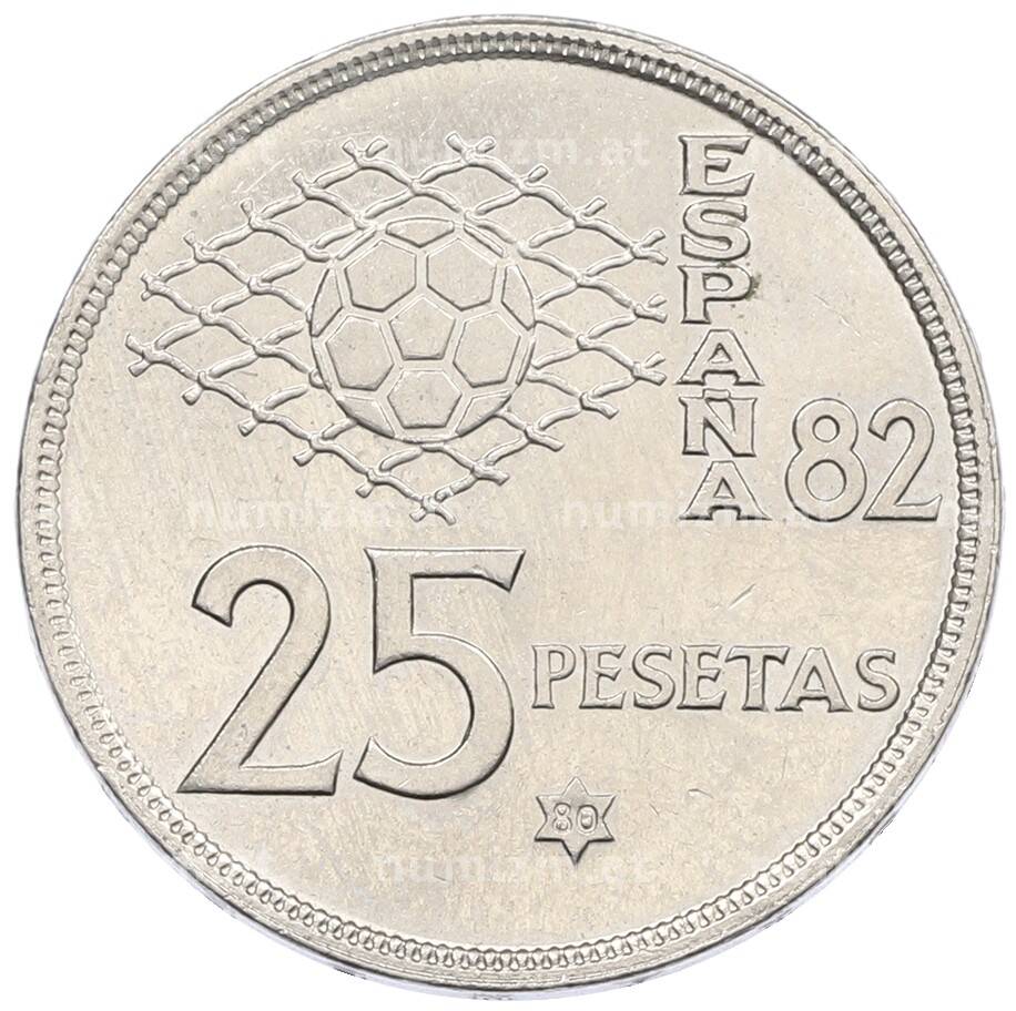 Купить 25 песет 1980 (80) года Испания «Чемпионат мира по футболу 1982 в Испании» по привлекательной цене можно в нашем интернет-магазине — Вам достаточно оформить заказ на сайте. Все монеты, представленные в каталоге, находятся в наличии на нашем складе.