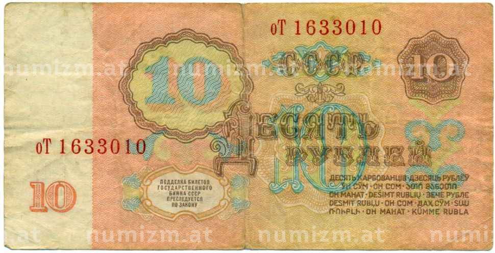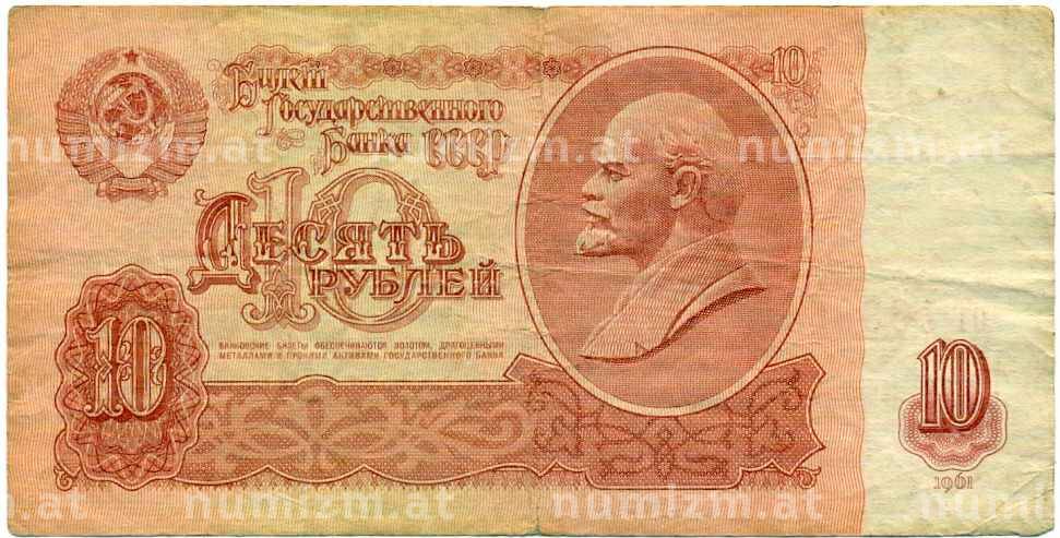 • Банкнота 10 рублей 1961 года (Артикул: K12-74298) — Фото №1 Банкнота 10 рублей 1961 года (Артикул: K12-74298) — Фото №2